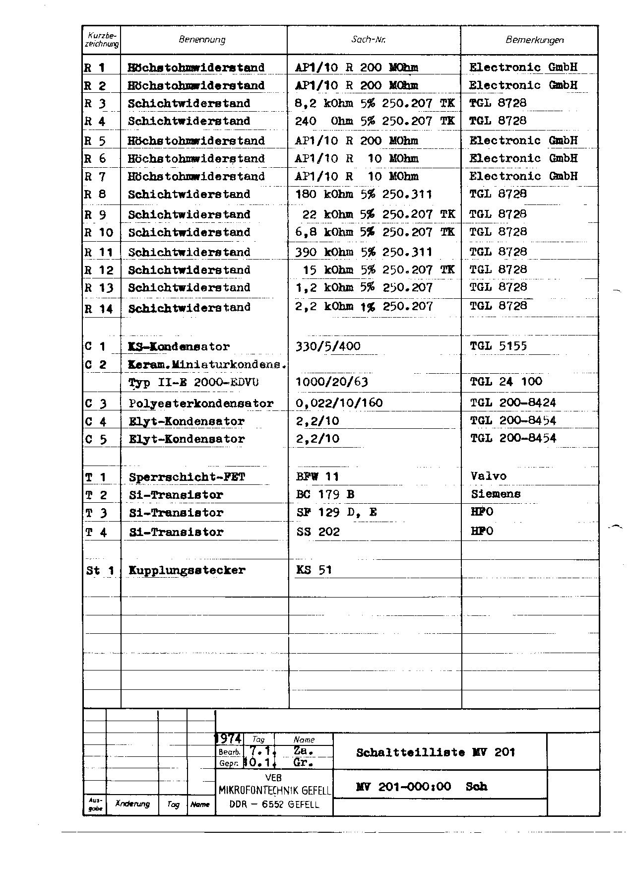 Rozpis součástek RFT MV 201