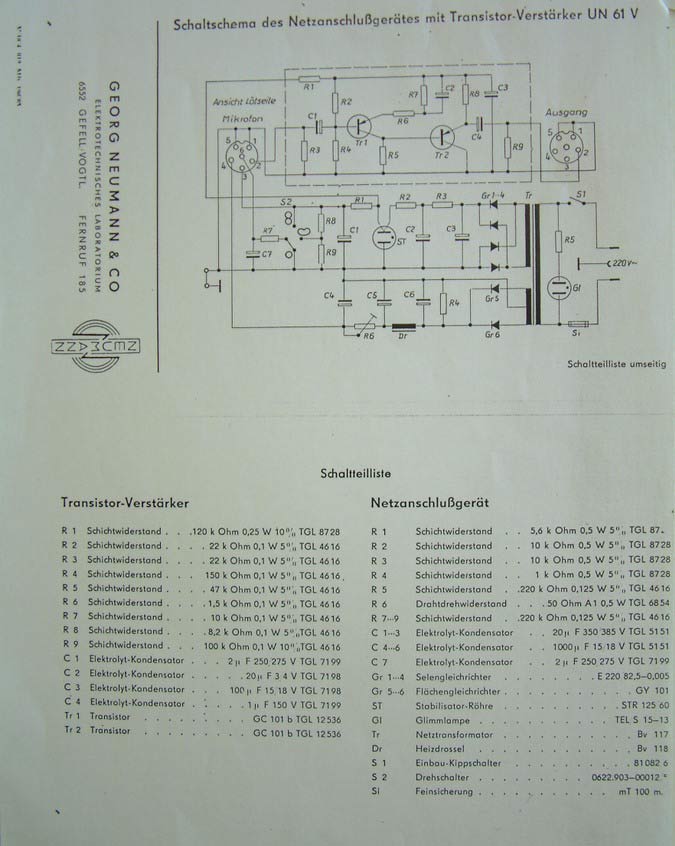 Schéma zapojení UN61V - stejného zdroje s vestavěným předzesilovačem