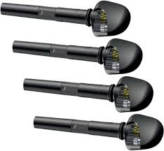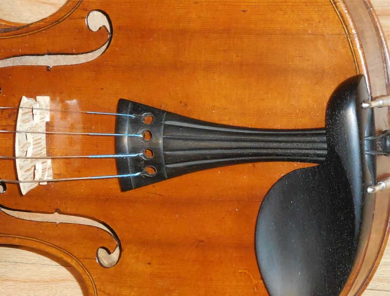 Nástroj je vystrojen černou ebenovou garniturou. Ladící kolíčky jsou "Wittner FINETUNE PEGS" s vnitřním převodem 8,5:1, což mi umožňuje nepoužívat další dolaďovače. Tyto kolíčky mohu více než doporučit. Přeladění houslí do jiné tóniny stíhám během uvádění další písně. Struník mám ebenový ve starším vylehčeném provedení s kevlarovým poutkem "DICTUM Violin KEVLAR LOOP". Kobylku jsem si vyřezal sám, což mě baví, a housličky mi to zvukově odpustily (nebo jsem to trefil). Struny jsou kovové "THOMASTIK SUPER FLEXIBLE 15A". Mají ovinutou i E strunu, což docela účinně omezuje pískání. Ladička klipová "D'ADDARIO PW-CT-14". Mechanika ebenového podbradku je nerezová "DICTUM".