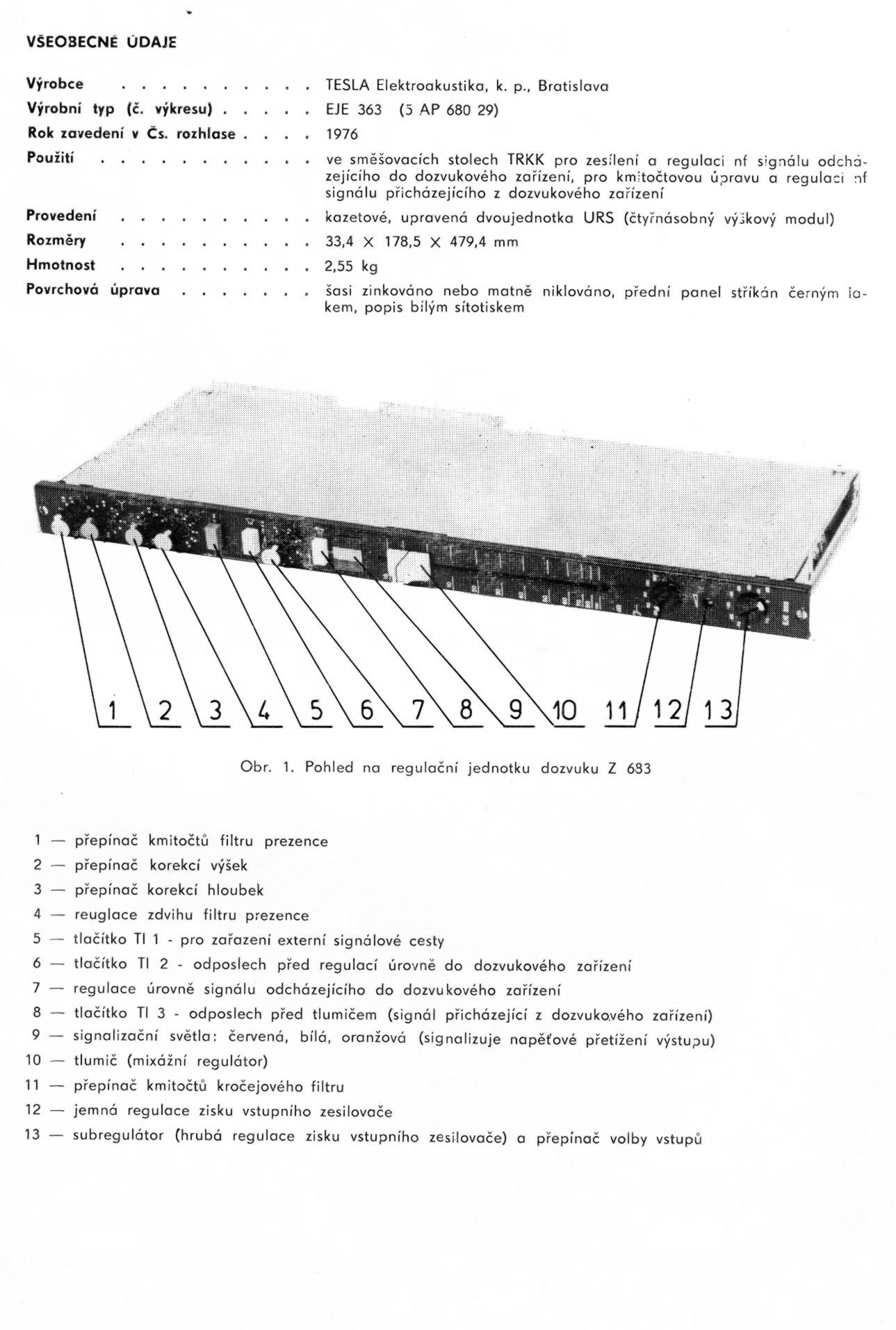 Technická dokumentace k regulační jednotce dozvuku Z 683
